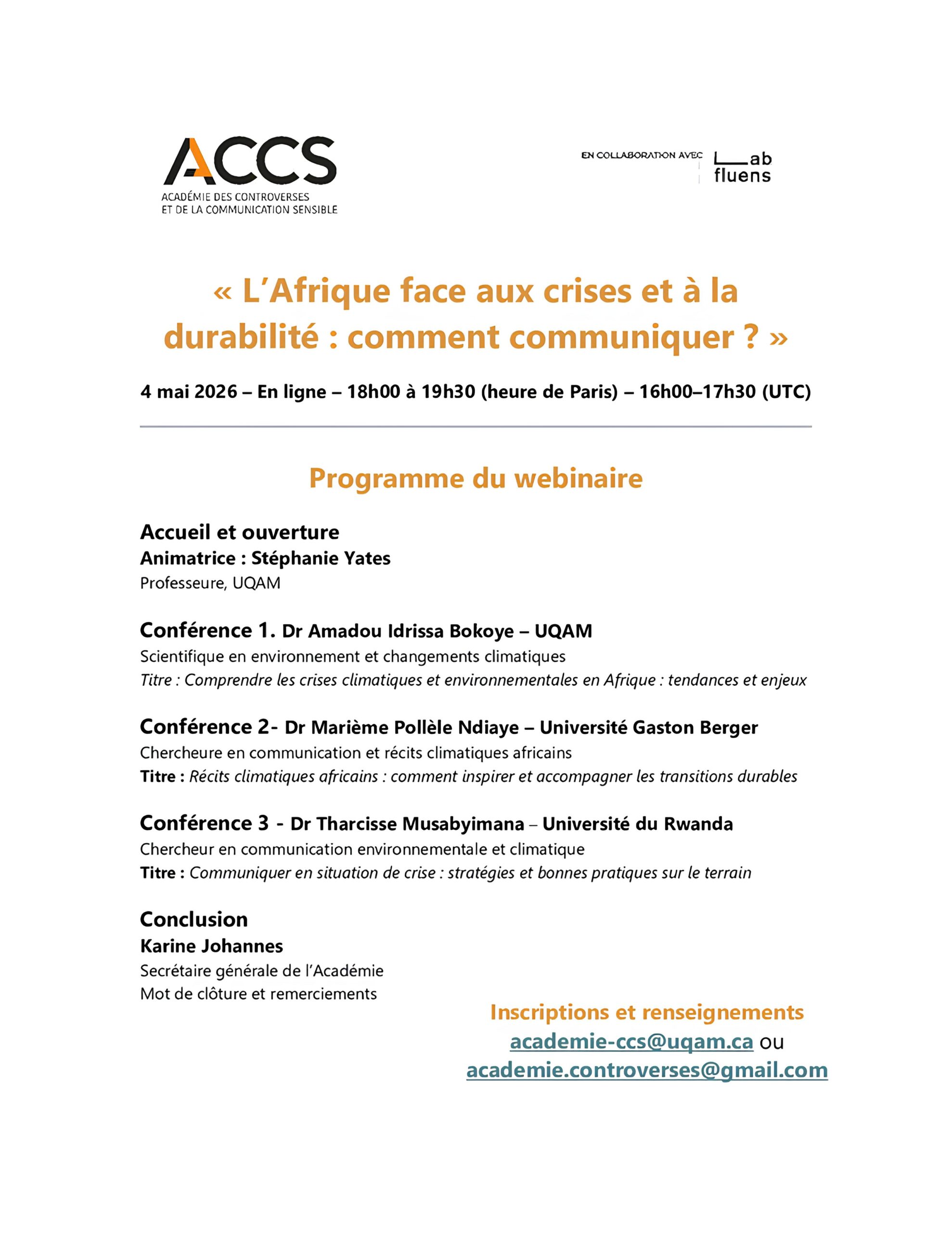 Ce webinaire explorera comment mieux communiquer face aux crises pour accompagner les transitions durables, mobiliser les acteurs et renforcer la capacité d’action des sociétés africaines.